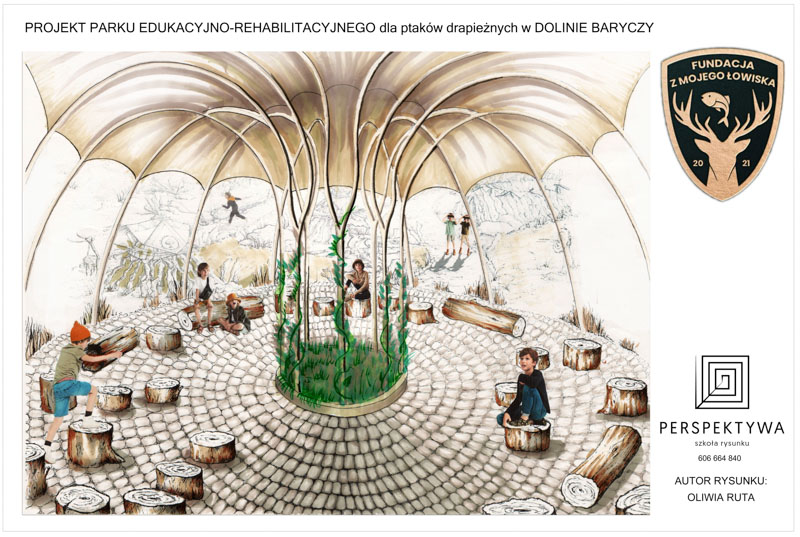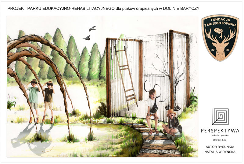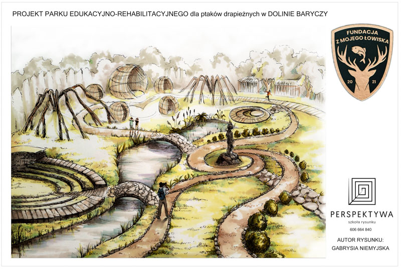 Projekt, który już jest w naszych głowach, sercach i ma swój zarys i kształt w całości będzie realizowany przez FUNDACJE Z MOJEGO ŁOWISKA angażując dodatkowo społeczeństwo, uczniów, strażaków, harcerzy i wiele innych osób. W dniu 19.08.2022 roku miałem przyjemność odbyć wspaniałą rozmowę z firmą PERSPEKTYWA – szkoła rysunku, która zobowiązała się do stworzenia grafik i projektów poszczególnych elementów parku takich jak: bramy, woliery dla ptaków, kamienne przejścia, ścieżki, tablice informacyjne, ławki i wiele innych. Dodatkowo zostanie zaprojektowana rzeźba Św. Huberta, która stanie się wspaniałym dopełnieniem naszego projektu. Doceniając naszą pracę firma PERSPEKTYWA – szkoła rysunku wykona całe zadanie nieodpłatnie doceniając naszą pracę i miejsce, które chcemy stworzyć.